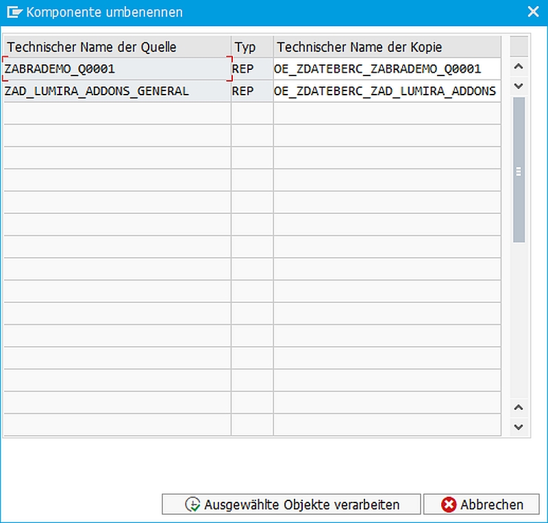 • InfoObjekte, Variablen sowie Währungs- und Mengenumrechnungsarten können über eine Tabellenpflege neue Namen zugeordnet werden