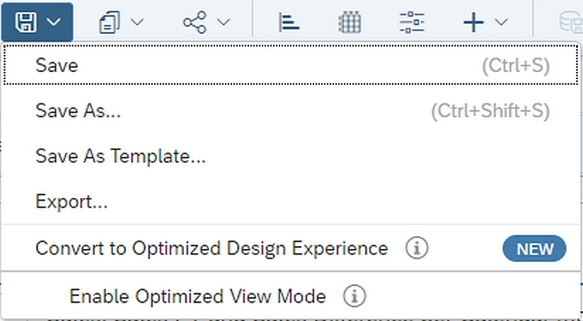 Eine Migration von alten Objekten (klassischen Stories und Applikationen) ist möglich. Hierfür muss die Story bzw. Applikation geöffnet und in den Optimized Design Experience konvertiert werden.