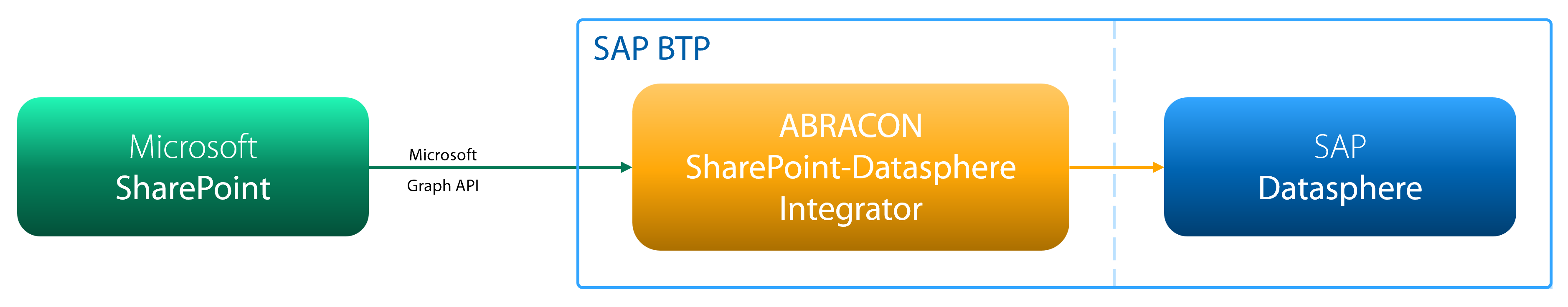 Der ABRACON SharePoint Datasphere Integrator ist unsere kosteneffiziente Alternative zur SAP Integration Suite und den Open Connectors. Statt teurer, lizenzpflichtiger Lösungen wird unser Integrator als App in der SAP BTP bereitgestellt und fungiert als Service, um SharePoint-Daten in die SAP Datasphere zu überführen.