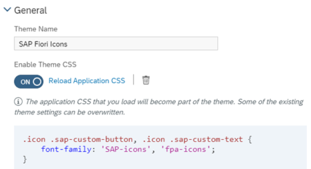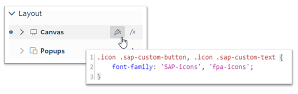 In Analytics Applications besteht die Möglichkeit „Benutzerdefinierten CSS-Code“ hinzuzufügen. Dies erlaubt uns, die über SAP UI5 im SAC Web-Frontend bereits standardmäßig eingebundenen Icon-Schriftarten in der Applikation anzuwenden.