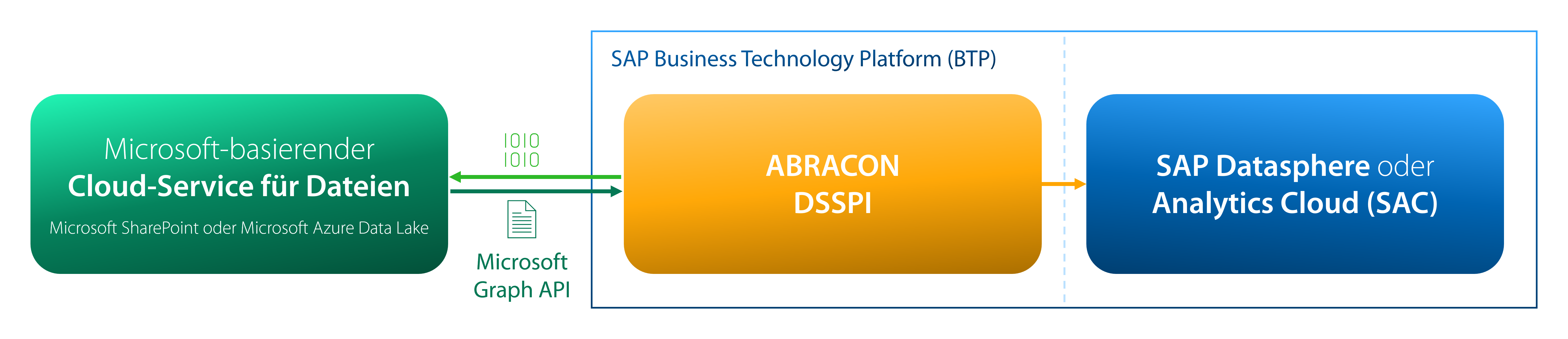 Der ABRACON DSSPI ist unsere kosteneffiziente Alternative zur SAP Integration Suite und den Open Connectors, wenn es darum geht, Daten aus der Microsoft Cloud in die SAP Cloud zu übertragen.
