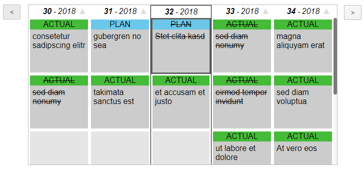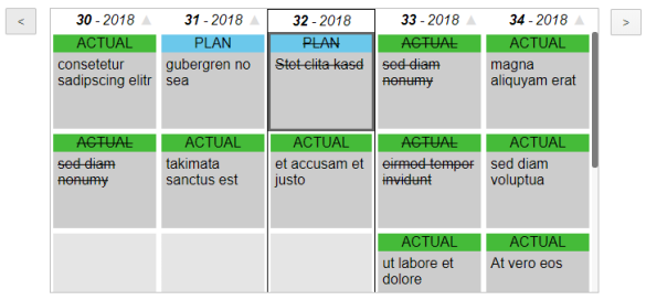 Besonders hervorzuheben ist der intelligente Scrolling-Mechanismus des Add-ons: steht nicht genügend Platz zur Visualisierung aller Zwischenschritte zur Verfügung, wird der Bereich der Zwischenschritte scrollbar. Die jeweils nicht sichtbaren Zwischenschritte werden ggf. in zusätzlichen Delta-Balken am Anfang und Ende zusammengefasst. Zu jedem Zeitpunkt ist somit erkenntlich, wie groß die gerade nicht sichtbaren Abweichungen sind.