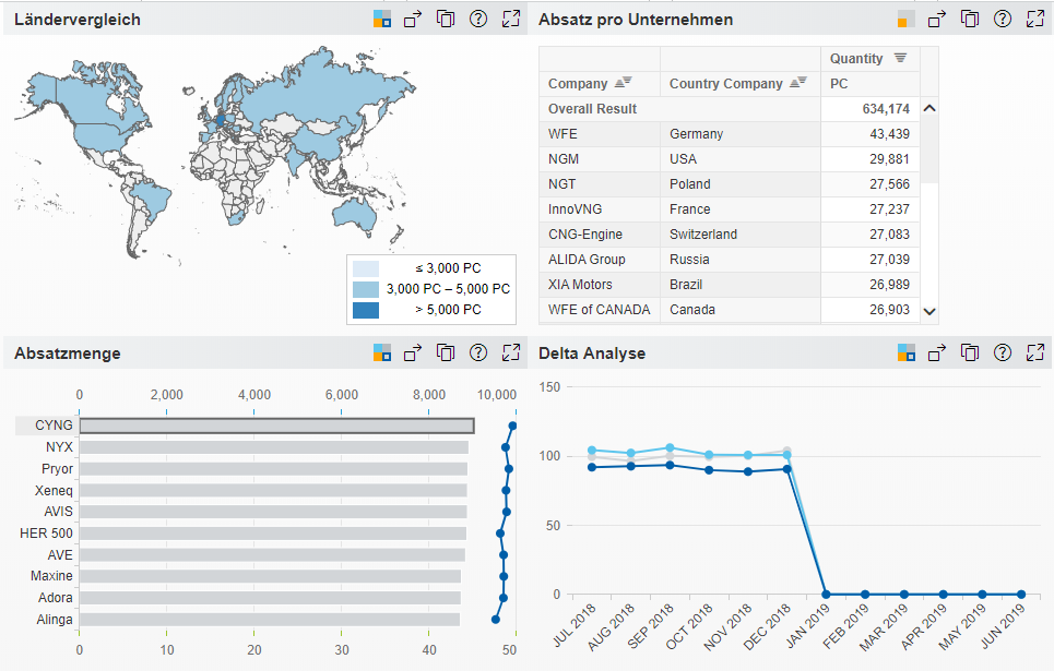 Das Anwenden der Styles bewirkt ein einheitliches Look and Feel aller Dashboards. Durch die genutzte HTML5 / CSS3 Technologie werden den gestalterischen Maßnahmen dabei fast keine Grenzen gesetzt.